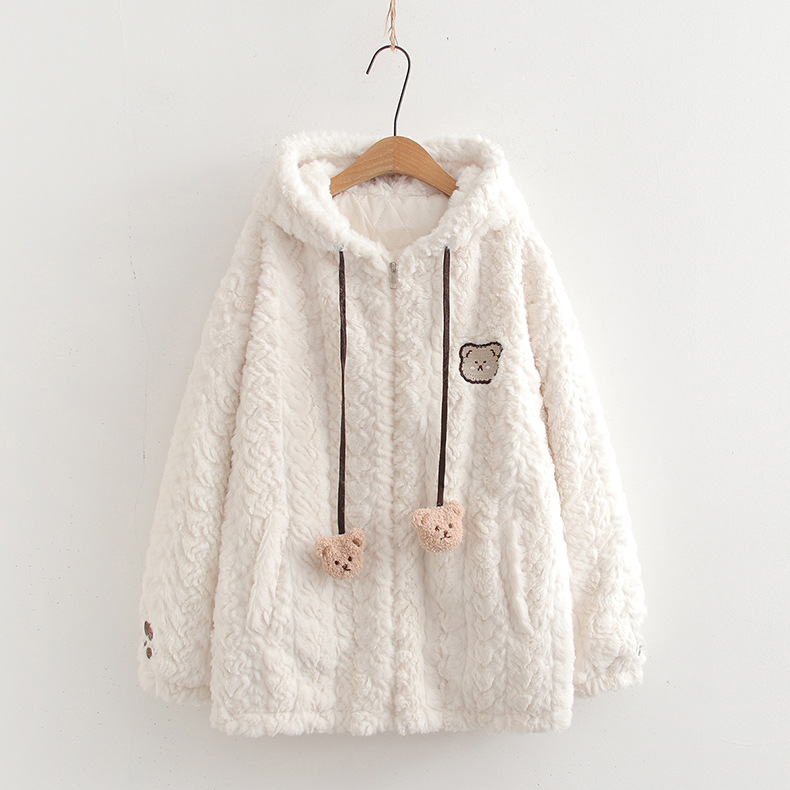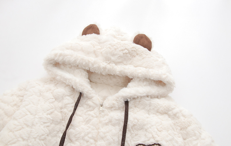 Stay warm and stylish this winter with our cozy Imitation Lamb Plush Coat with Ears Hoodie. Crafted from premium imitation lamb fur, this coat offers exceptional warmth and comfort. The adorable hoodie design with plush ears adds a playful touch. Perfect for any occasion, this coat is a must-have for winter fashion enthusiasts.