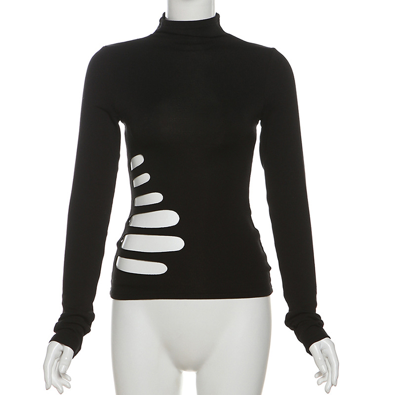 Solid Black Cut-out Long Sleeve Top