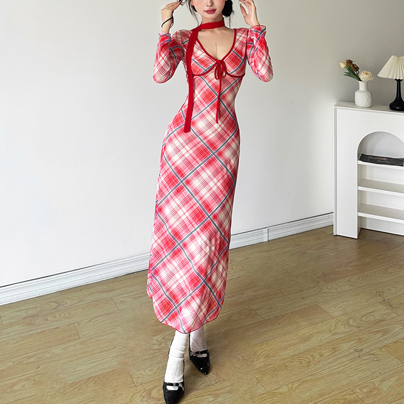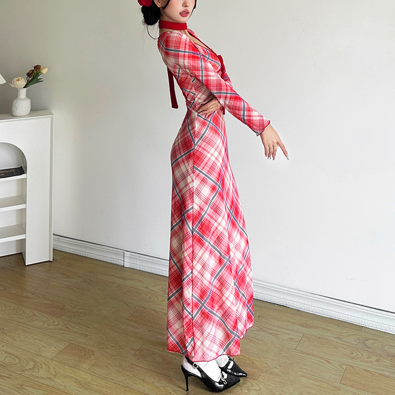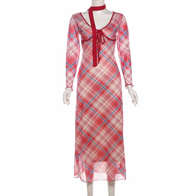 Embrace your inner trendsetter with this stunning Fashion Plaid Long Sleeve Maxi Dress. Showcasing a timeless plaid pattern, this dress exudes effortless chic.