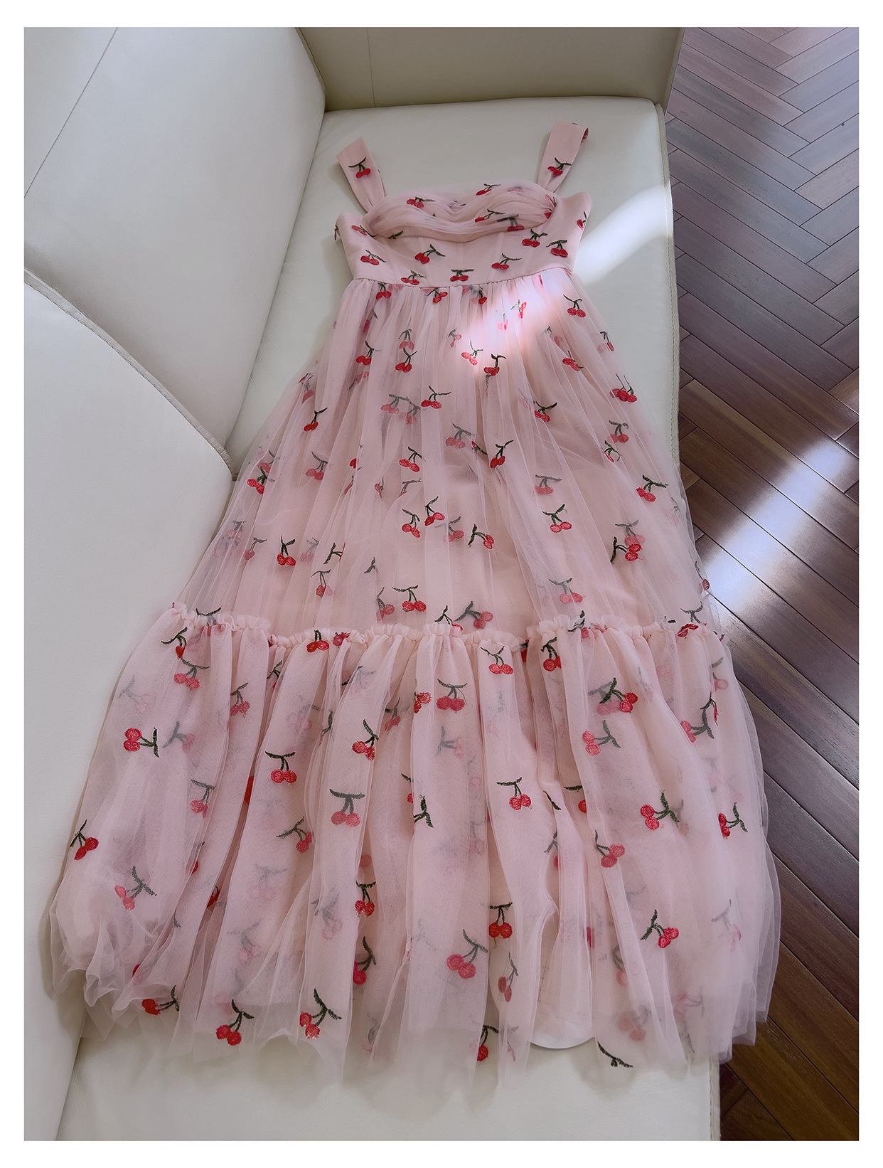 Whether you're attending a garden party, enjoying a beachside stroll, or simply relaxing on a sunny afternoon, this Sweet Cherry Print Mesh Maxi Dress is your go-to piece for a chic and comfortable look. Pair it with sandals or wedges for a complete, summery ensemble.