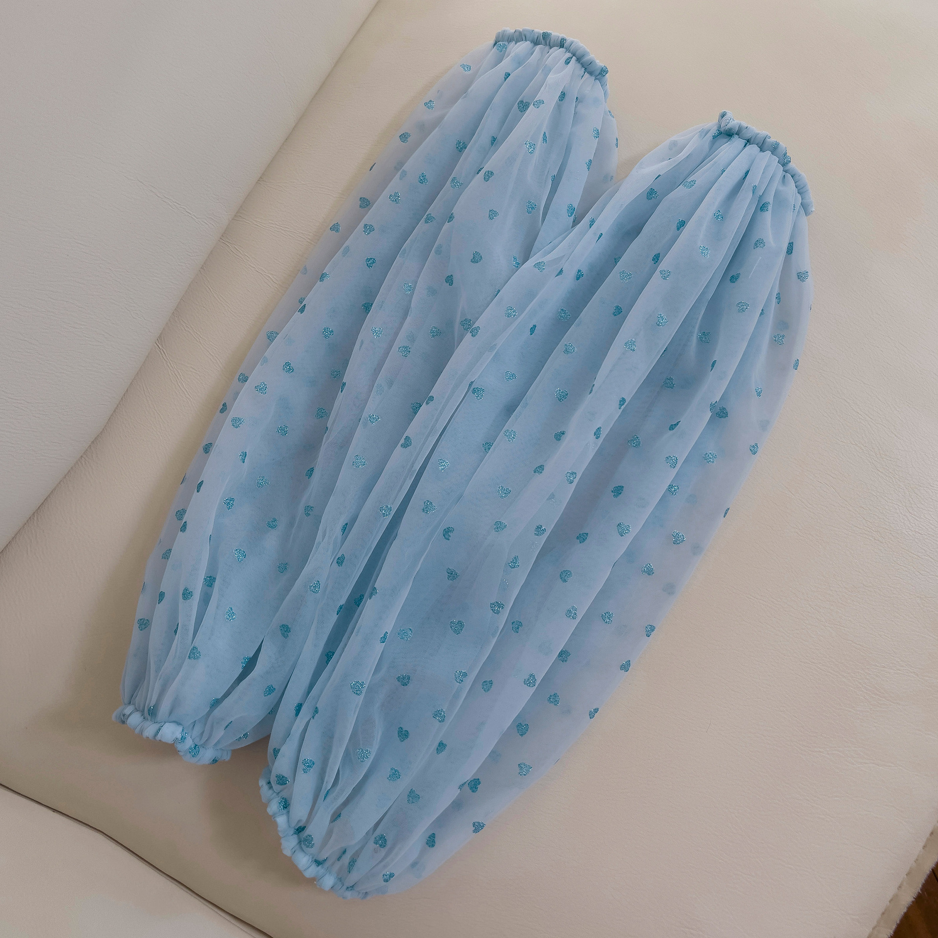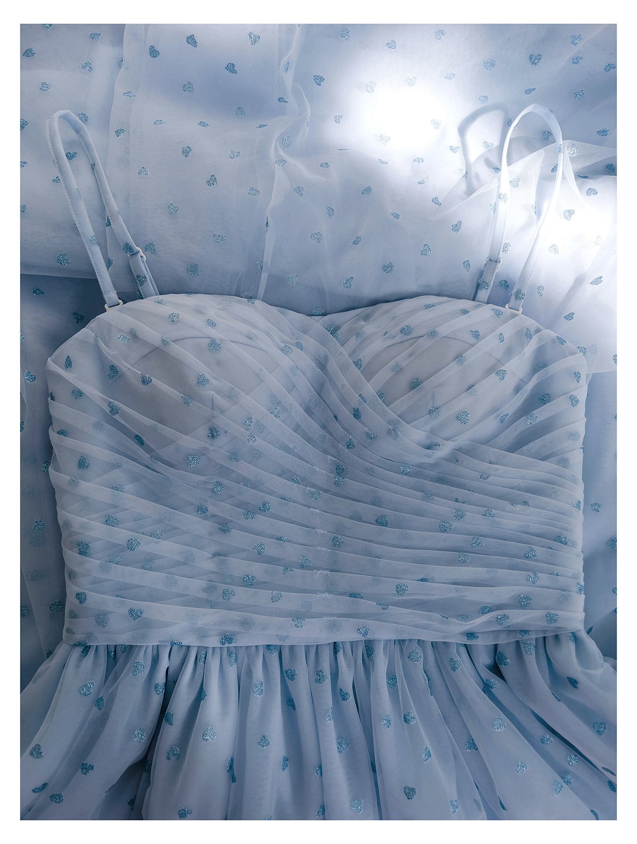 Sky Blue Mesh Dress With Puff Sleeves