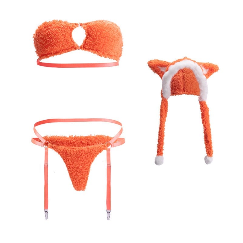 Material: Plush Package Includes: Orange [Fox hat + buttoned tube top + T pants (integrated garter)] One size fits most: fit body weight 40-60kg