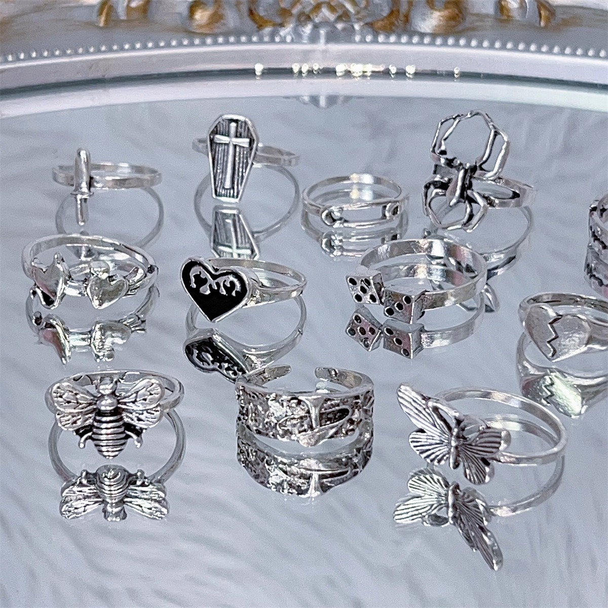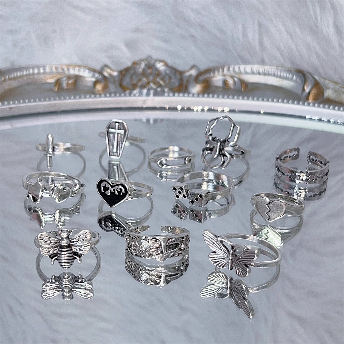 Dive back into the millennium with our ultimate 12-piece Y2K Rings Set! This collection is packed with playful nostalgia, featuring iconic designs like the edgy Heart Dagger, bold statement shapes, and more trendy motifs. Mix, match, and stack them for an authentic early-2000s look. These fun, vibrant rings are the perfect accessory to instantly elevate your style and channel that undeniable throwback energy. Get your complete Y2K vibe today!